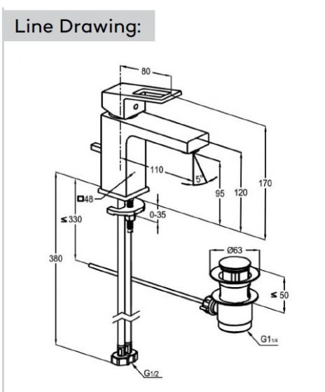 Thông số kỹ thuật của vòi chậu PACIFIC gồm chiều cao vòi 170 mm, chiều cao mũi vòi 95 mm, áp lực nước từ 0.1 đến 10 bar và lưu lượng nước 5 lít mỗi phút. Kích thước lỗ chờ là Ø35 mm và kiểu lắp đặt trên chậu rửa mặt. Sản phẩm cũng đi kèm với lỗ gõ Ø35 mm để đảm bảo sự linh hoạt trong lắp đặt.