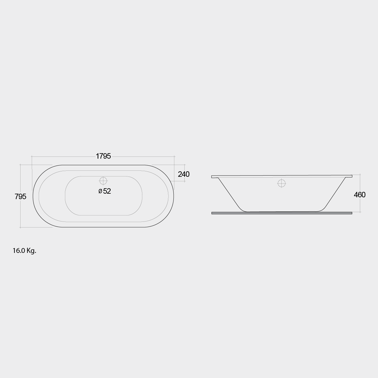 Kích thước: 1795 X 795 mm, H: 460 mm