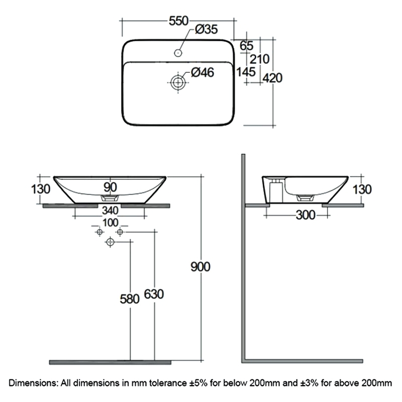 Chậu đặt bàn VARCT55501AWHA được làm từ men sứ chống bám bẩn RAK-Protect giúp dễ dàng vệ sinh và duy trì vẻ đẹp sáng bóng. Với kích thước 550 x 420 mm và chiều cao 130mm, nó phù hợp cho nhiều không gian bàn làm việc và sẽ là điểm nhấn tuyệt vời trong phòng tắm của bạn.