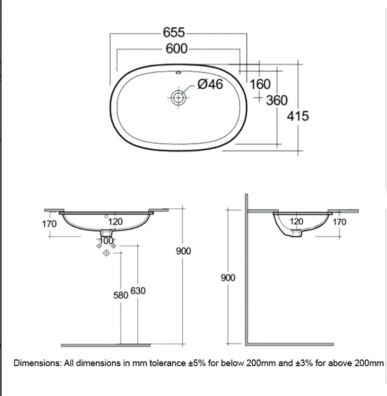 Chậu âm bàn VARUC36000AWHA có lỗ thoát tràn