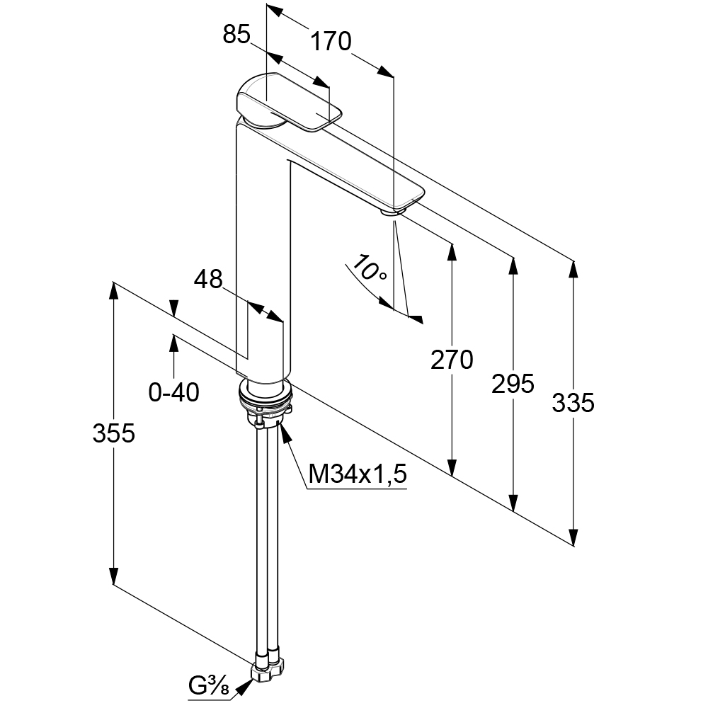 - Đầu vòi: Điều chỉnh dòng chảy góc 10°